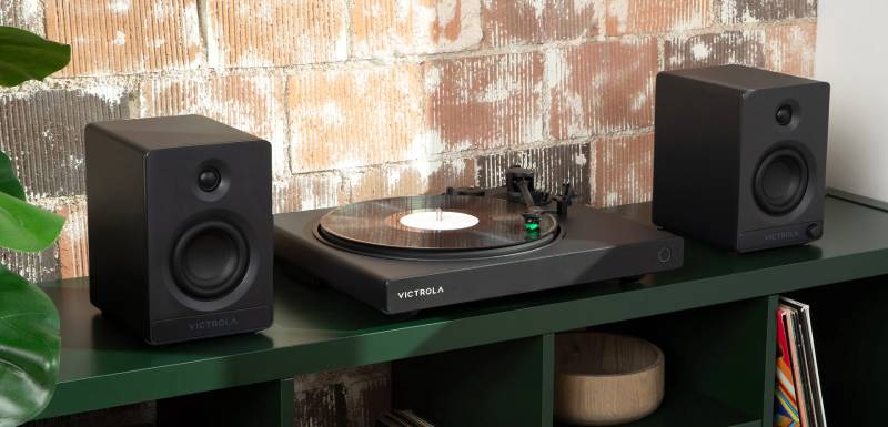 Pair seamlessly with the Victrola Tempo Bluetooth Speakers (sold separately) with complementary design elements and a matching color palette. Featuring Bluetooth streaming and Auracast™ multi-speaker connectivity, the Tempo speakers allow you to wirelessly expand your setup across multiple speakers for a seamless audio experience with enhanced range and stability.