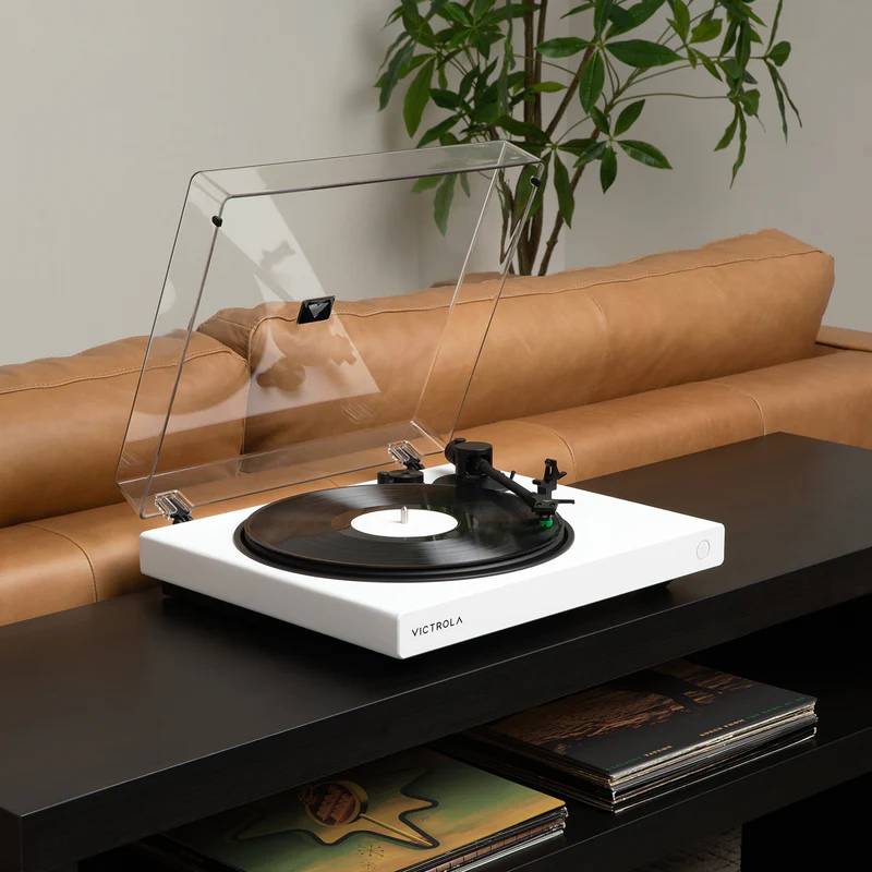 Designed with intuitive front-facing controls, a removable headshell for easy cartridge upgrades, an easy-set counterweight, and a protective dust cover, the Wave is crafted for vinyl enthusiasts of all levels. Combining performance, versatility, and a modern design aesthetic, the Victrola Wave is the ideal centerpiece for your home audio setup.