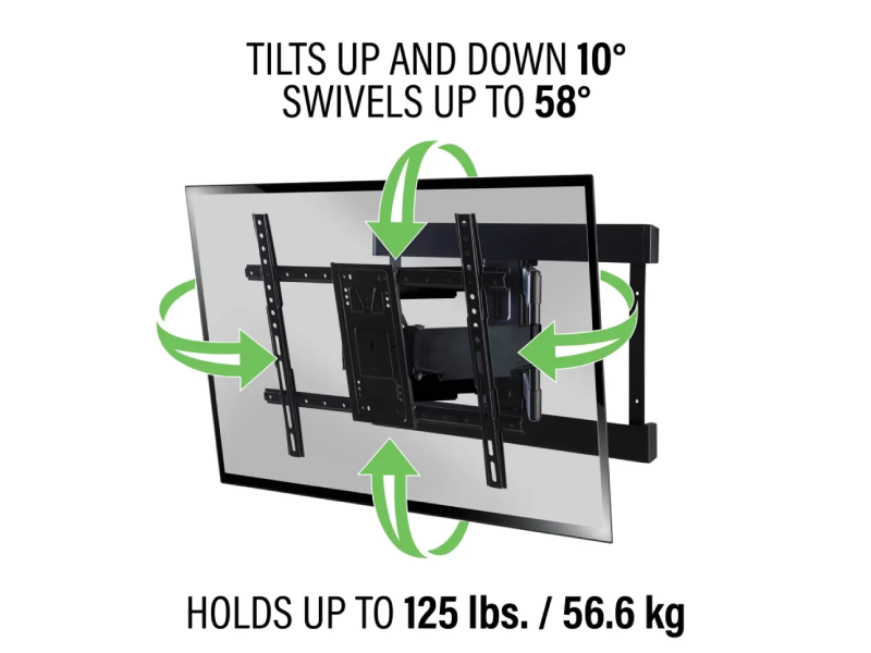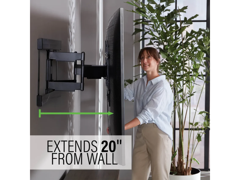 The VLFS820 Large Super Slim Full Motion Mount provides the optimal viewing experience with a profile of just 1.64". Featuring 20" of extension with up to 58° of swivel for the best view wherever you are in the room. The VLFS820 offers a stylish industrial design that achieves the ultimate experience in performance, ease of installation, and the highest level of compatibility. For TVs 40"-90" up to 125 lbs.