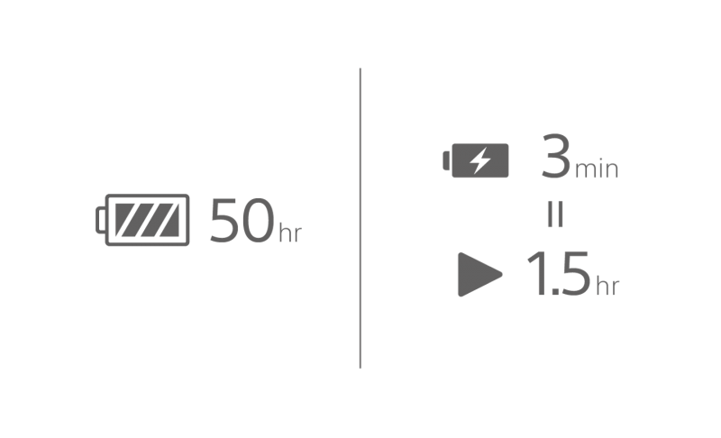 With up to 50 hours of battery life, you can listen to your favourite music without worrying about running out of charge. And, if your headphones battery is running low, a three-minute quick-charge can give you 1.5 hours of listening time.