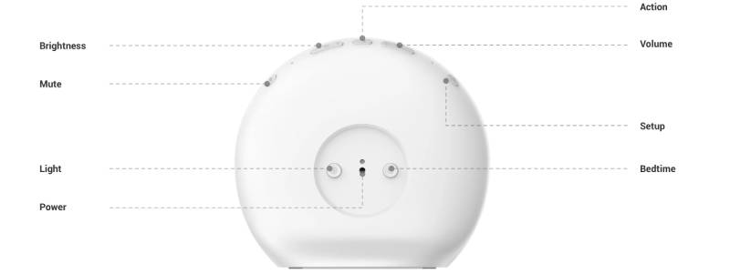 | Button | Brightness, Action, Volume+, Volume-, Mute, Light, Setup, Bedtime |