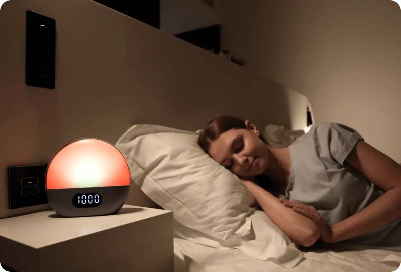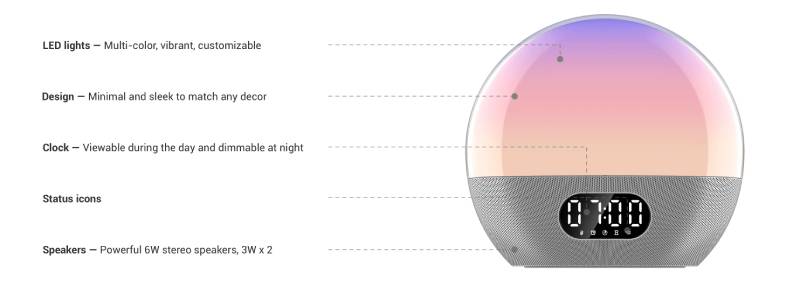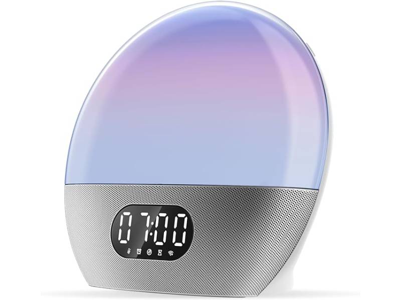 All-in-one sunrise alarm clock, bedside reading light, and sound machine with Alexa built-in.