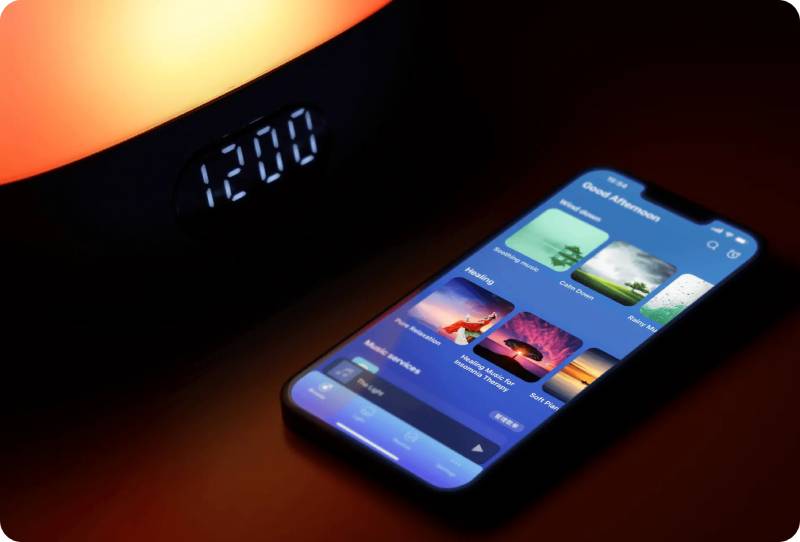 Unlike other sound machines that provide only a few sleep noises and recorded sounds for relaxation, the WiiM Wake-up Light offers an extensive collection of free sleep noises and soothing sounds. Additionally, you can stream unlimited relaxing sounds from your favorite music services.