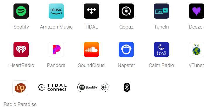 Easily stream music using the native app, Spotify Connect, Tidal Connect, or Alexa Cast via WiFi, or connect via Bluetooth on compatible mobile devices.