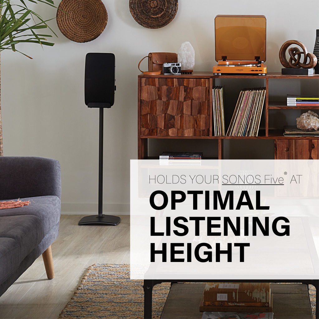 - Holds speaker at manufacturer's recommended listening height for optimal audio performance