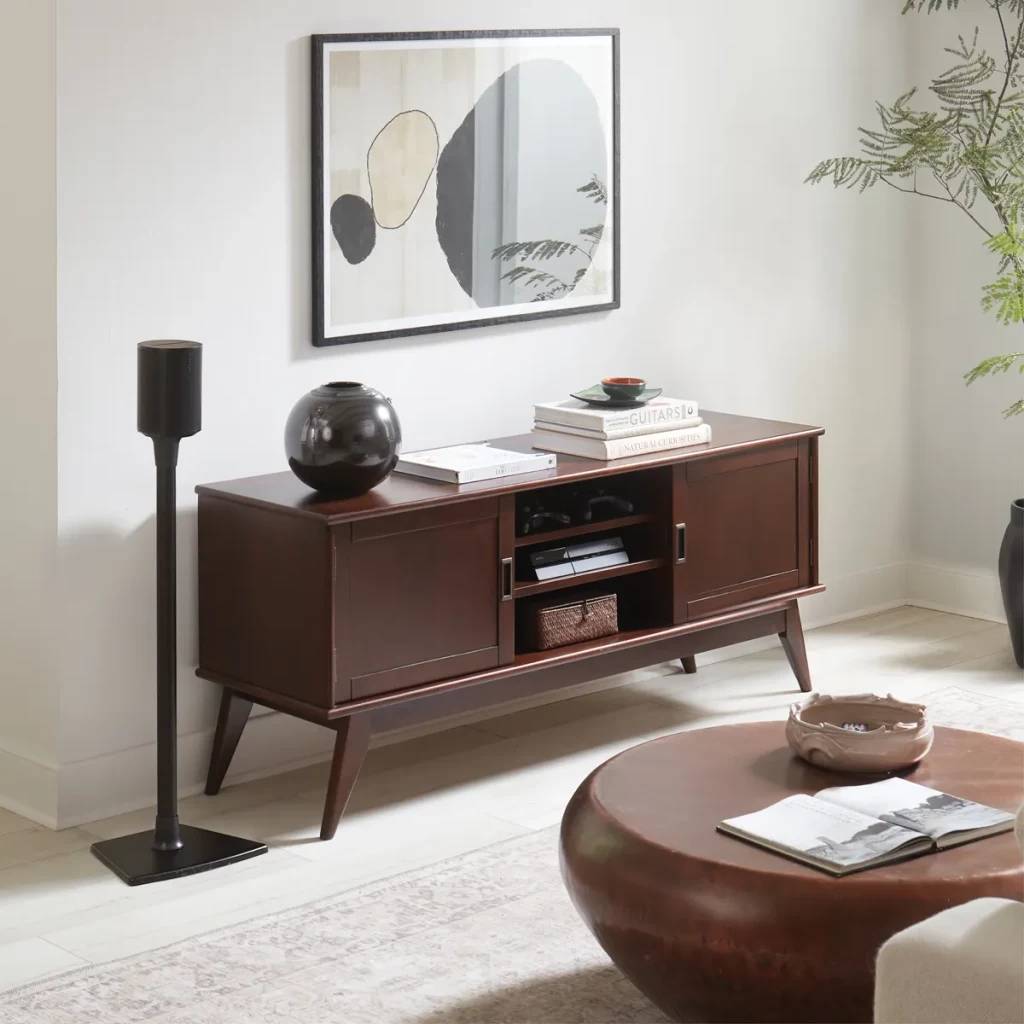 These SANUS Fixed-Height Speaker Stand designed for the Sonos Era 100™ offer the optimal listening height, cable management and sleek design. This stand is sure to deliver optimal audio performance regardless of your listening needs. Constructed of durable steel that not only resists wear, but also perfectly complements the aesthetics of the Sonos Era 100™ for a sleek, seamless look.