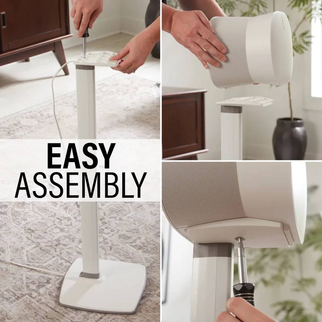 Perfect for use in any setup, be it home theater, surround sound, or ambient listening. For a cable-free look, our Press Fit™ cable management technology secures and conceals cords down the back of the stand. Assemble easily in 15 minutes with a Phillips screwdriver, this sleek stand will help get you the perfect sound for your space.