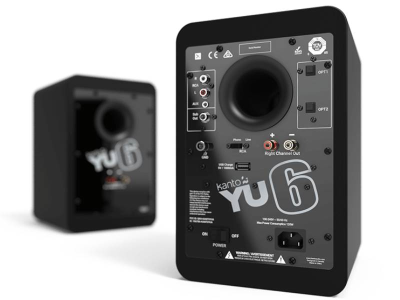 Kanto 2 Way Powered Bookshelf Speaker with Bluetooth and Phono Preamp - YU6-BLK